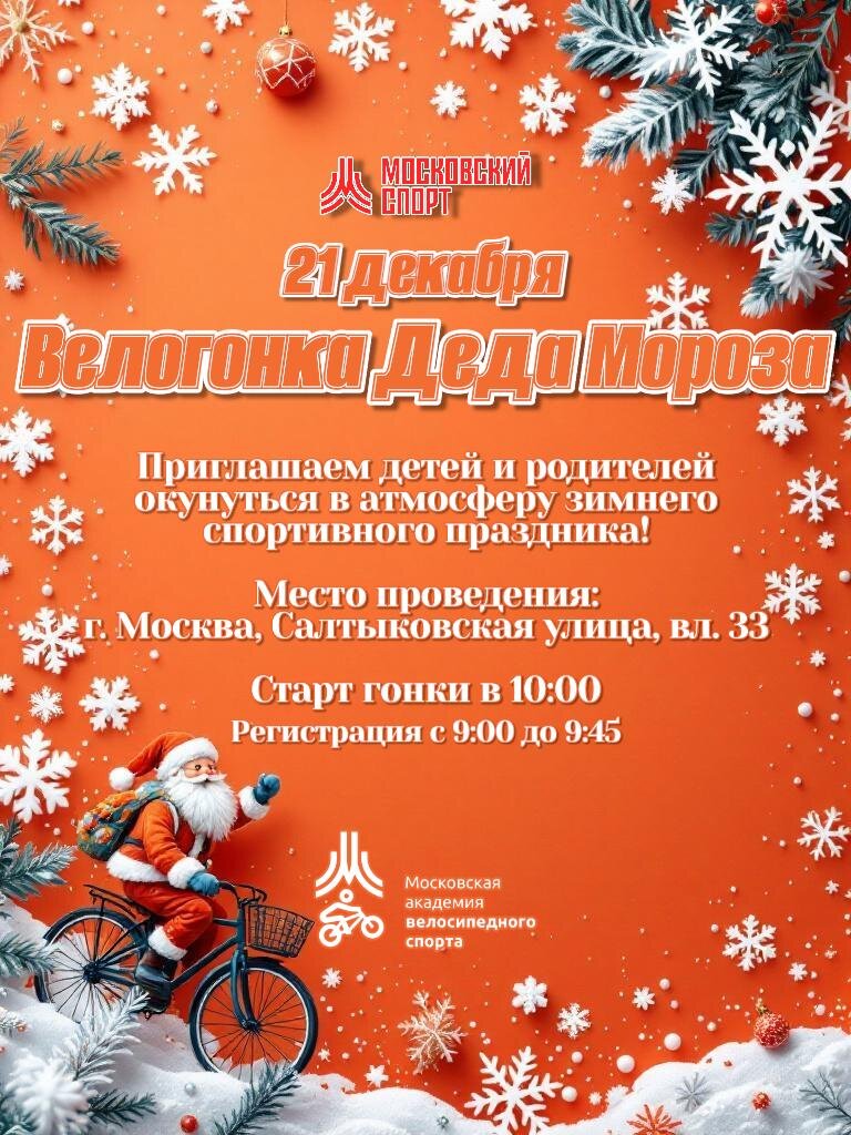- 21.12.2025 (Вс) 10:00 - Велогонка Деда Мороза.
