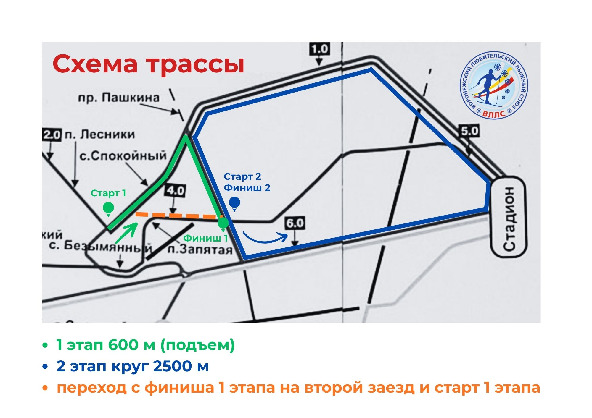 2) 2 круга по 700 метров на 1 этапе мероприятия.